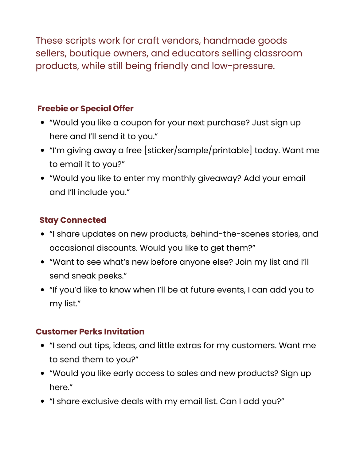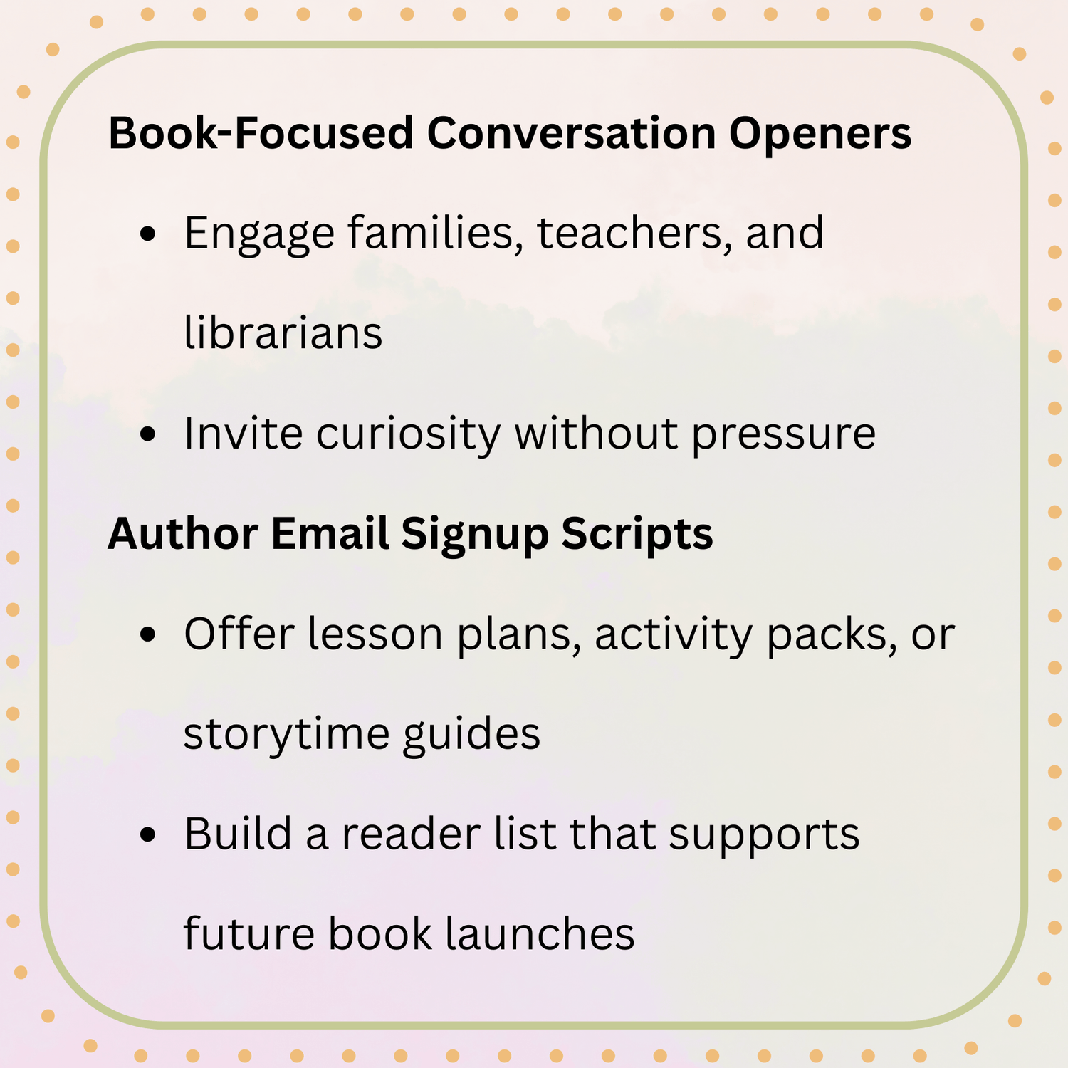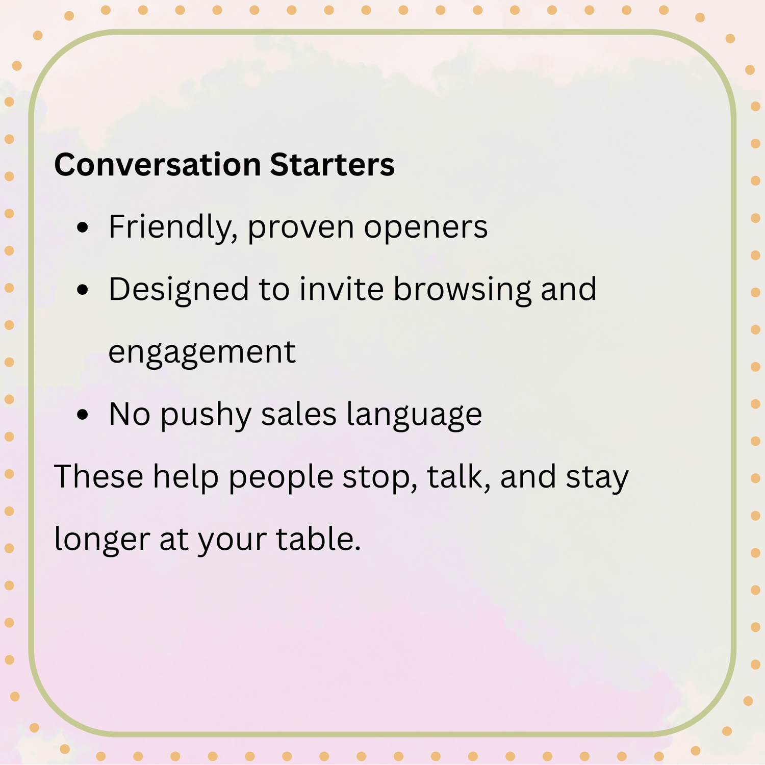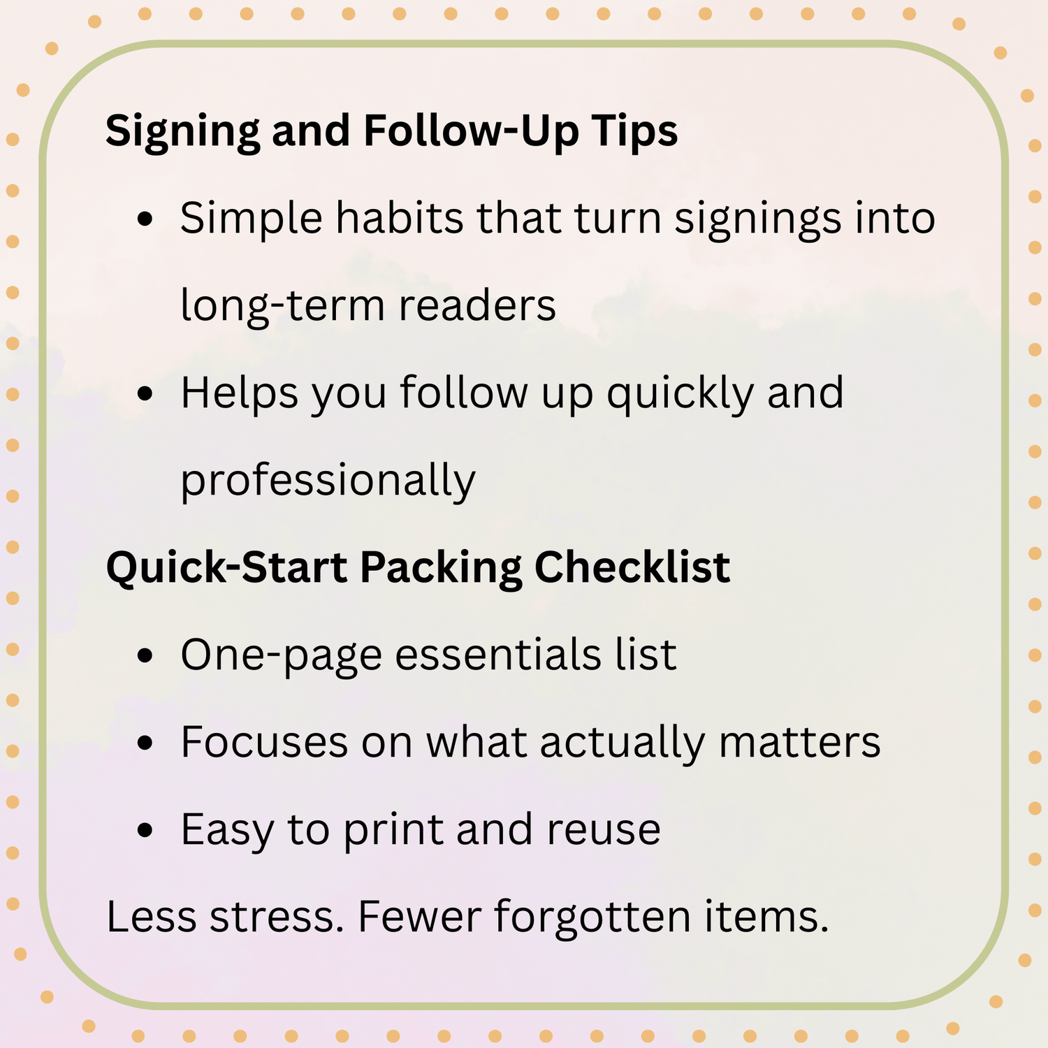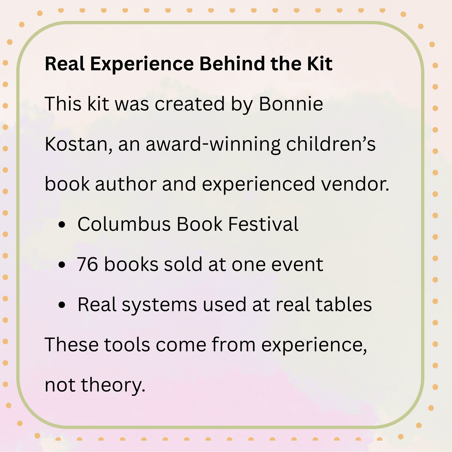 If you sell at vendor events, craft fairs, book festivals, school events, or markets, this kit gives you a simple system to stop guessing and start converting conversations into sales and email sign-ups.